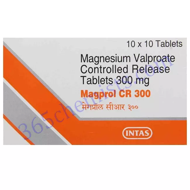 The anticonvulsant medication known as Magprol CR 300mg Tablet (Magnesium Valproate 300mg) is prescribed to patients suffering from epilepsy as well as a variety of psychiatric conditions. Seizures can be prevented or their frequency lowered to a more manageable level with the help of Magprol CR 300mg Tablet, which works by restoring normalcy to abnormal electrical activity in the brain. It is essential to ensure that the dosage and administration instructions provided by your healthcare provider are strictly adhered to at all times. Despite the fact that Magprol CR 300mg Tablet is generally well tolerated, it has the potential to cause adverse effects such as drowsiness and gastrointestinal disturbances. It is imperative that you seek medical attention if you experience any side effects that are severe or continue for an extended period of time. Always discuss your concerns and questions regarding the Magprol CR 300mg Tablet with your primary care physician. Epilepsy and other psychiatric conditions are both treatable and, with the right medical guidance and treatment, can be effectively managed, resulting in an improvement in overall quality of life.