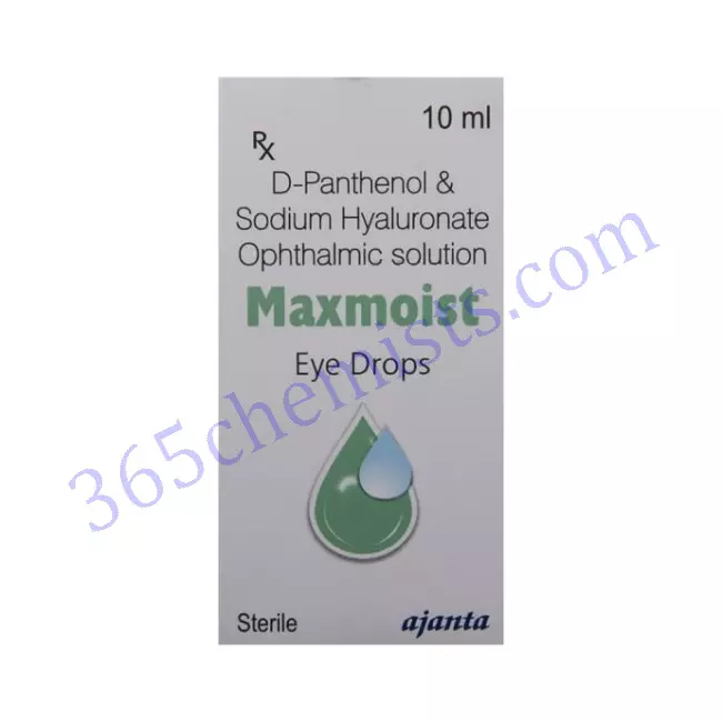 - Long-lasting Moisturization The ocular surface is provided with long-lasting moisturization by Maxmoist Eye Drop, which helps to ease dryness and discomfort. Because the eye drop contains sodium hyaluronate, the natural ability of the eyes to retain moisture is increased, and the eyes remain hydrated for a longer amount of time as a result.