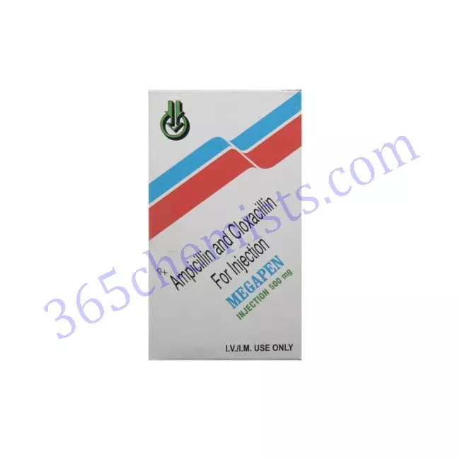 Megapen 500Mg/500Mg Injection is an antibiotic so it is used to fight bacterial infections. It is a semi-synthetic derivative of penicillin and is used to treat urinary tract infections, pneumonia, respiratory track infections, meningitis, or gonorrhea, infections of the stomach or intestines.