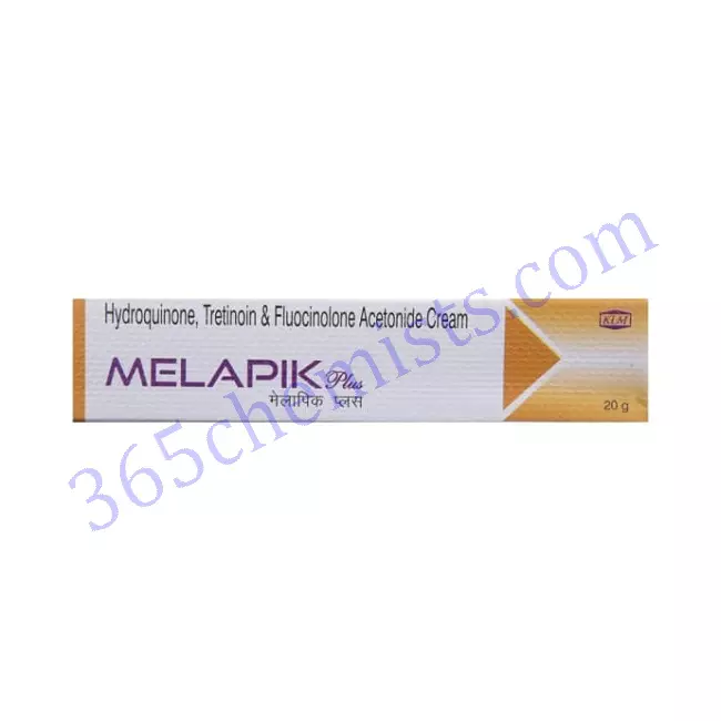 An efficient topical treatment for skin hyperpigmentation issues is Melapik Plus Cream. It provides a more radiant complexion by reducing the appearance of black spots, melasma, and uneven skin tone thanks to the main ingredient hydroquinone. Keep in mind to adhere to the usage guidelines, wear sunscreen, and get dermatological help if necessary. Individual outcomes may differ, and it could take some time to get the desired effect. Adopt a regular skincare regimen and reap the rewards of a complexion that is more even and radiant.