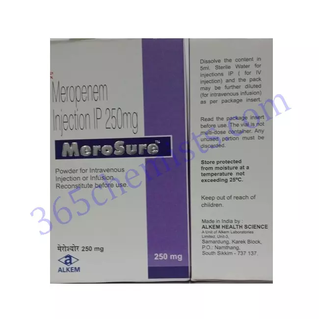 - Patients are required to take the full course of Merosure 250mg Injection that has been prescribed to them, even if they begin to feel better before the completion of the treatment. Unfinished treatment may not completely eradicate the infection and may also contribute to the development of antibiotic resistance.