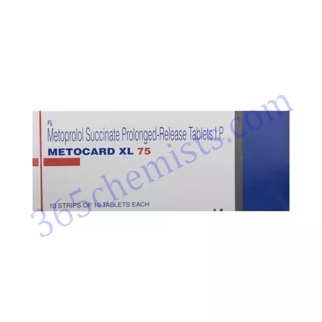 - Metocard XL 75mg Tablet may be prescribed as part of the treatment for heart failure in order to improve symptoms, reduce the number of hospitalisations required, and enhance the heart’s overall function.