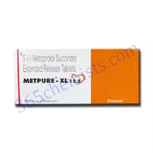 S-Metoprolol Succinate is the active component in the medicine known as Metpure XL 12.5mg tablet. This medication comes in tablet form. It is primarily employed in the treatment of hypertension (also known as high blood pressure) as well as a variety of cardiovascular conditions, and it is a member of the group of medications known as beta-blockers. The medication will remain effective for a longer period of time thanks to the tablet’s ability to deliver it in a manner that is known as sustained release.