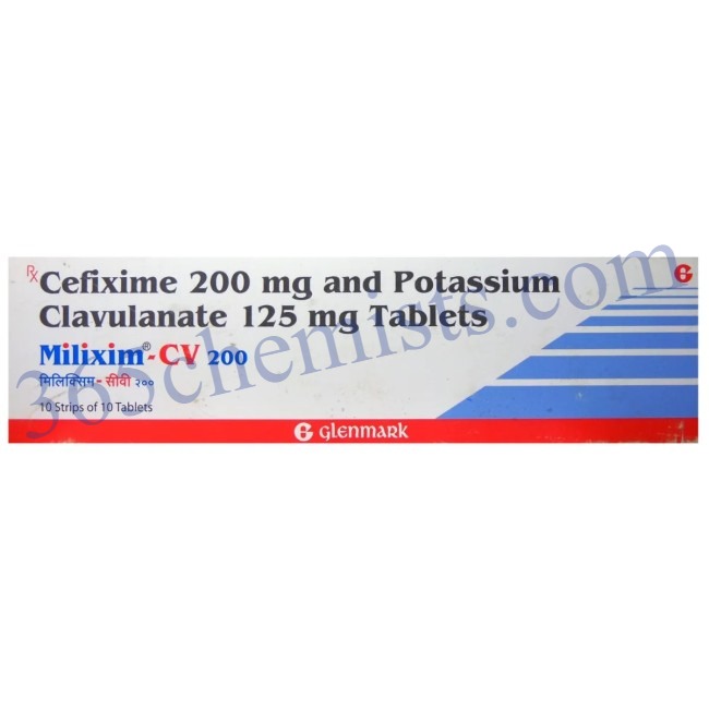 Milixim CV 200 mg/125 mg Tablet is a combination of Cefixime (200 mg) and Clavulanic Acid (125 mg). Cefixime belongs to the cephalosporin class of antibiotics, while Clavulanic Acid works as a beta-lactamase inhibitor. Together, they enhance each other’s effectiveness in eliminating harmful bacteria that cause infections. This combination is widely prescribed for respiratory tract infections, urinary tract infections, ear infections, throat infections, and certain skin infections.