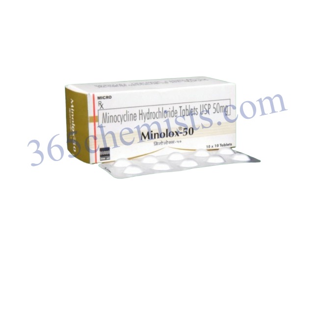 The antibiotic drug Minolox 50 mg Tablet, which contains 50 mg of minocycline, is frequently used to treat different bacterial infections. It’s crucial to follow your doctor’s instructions and finish the entire course of treatment. Consult your healthcare professional if you have any questions or concerns regarding Minolox 50 mg Tablet.Minolox 50 mg Tablet, which contains of minocycline, is an antibiotic used to treat bacterial infections. It is crucial to take the medication as prescribed by your doctor and to heed all safety instructions and warnings that come with its use. Consult your healthcare professional if you have any questions or concerns regarding Minolox 50mg Tablet.