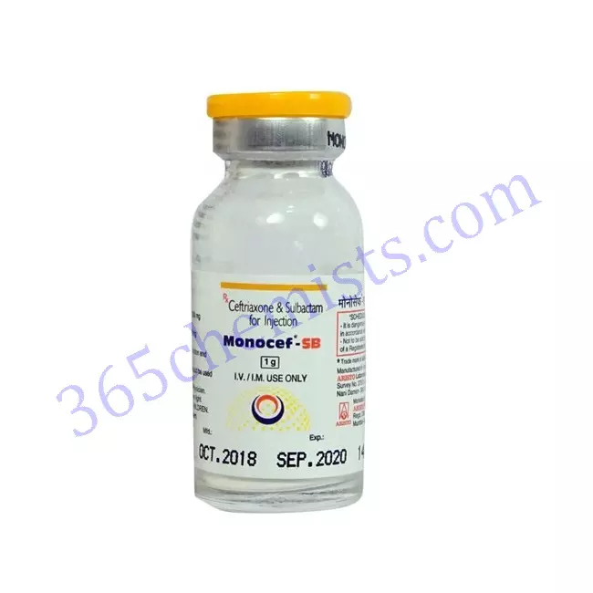 A wide variety of bacterial illnesses can be effectively treated with Monocef SB 1g Injection because it is a tried and true medication. Infections of the skin, urinary system, respiratory tract, and soft tissue are only few of the conditions that are routinely treated with this medication. Because of the broad-spectrum activity of ceftriaxone and the resistance-reversing effect of sulbactam, Monocef SB 1g Injection is an excellent option for patients who require powerful and comprehensive antibiotic treatment.