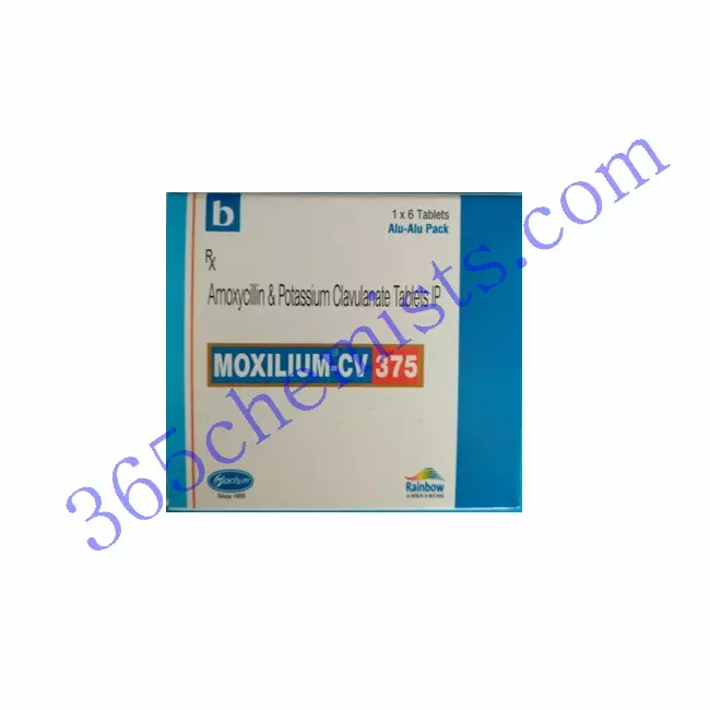Home Antibiotics Moxilium CV 375mg Tablet (Amoxycillin 250mg/Clavulanic Acid 125mg)