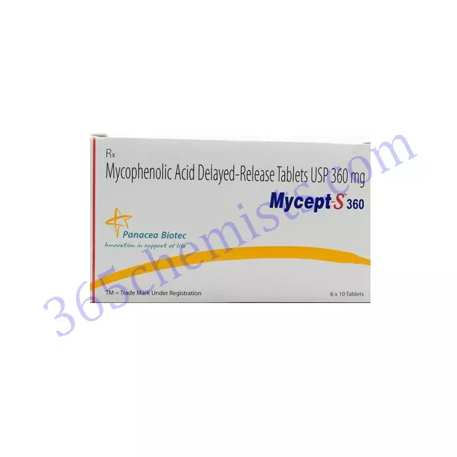 Mycophenolate Mofetil, which is sold under the brand name Mycept-S 360 Tablet, is an immunosuppressive medication that is commonly given to patients who have undergone organ transplantation to reduce the risk of organ rejection. Mycept-S 360 Tablet is able to effectively suppress the immune response and improve the odds of a transplant being successful because it inhibits lymphocyte proliferation in a selective manner. It is common practise to prescribe it in conjunction with other immunosuppressive medications, and it is essential that patients be carefully monitored for any possible adverse reactions. Mycept-S 360 Tablet plays a crucial role in the long-term management of transplant recipients by providing effective immunosuppression. This helps to improve the transplant recipients’ quality of life while also lowering the risk of organ rejection.