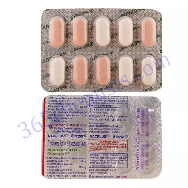 Nac Plus Tablet is a tried-and-true medication that offers effective relief from both pain and fever by combining the active ingredients diclofenac and paracetamol in a single tablet. It is commonly recommended by medical professionals for the treatment of a variety of symptoms and conditions, including headaches, dental pain, menstrual cramps, aches and pains in the muscles, and fever. Nac Plus Tablet provides individuals who are looking for relief from these discomforts with a solution that is both convenient and reliable. This enables these individuals to regain their well-being and continue with their day-to-day activities.