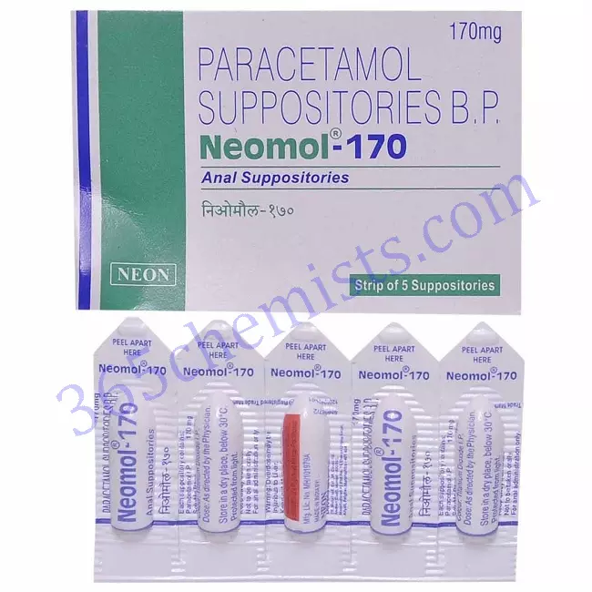 NEOMOL 170MG SUPPOTORIES contains Paracetamol, an analgesic (pain killer) and antipyretic (reduces fever). It inhibits the production of certain chemical messengers in the brain known as prostaglandins. Thus, reduces pain. Also, NEOMOL 170MG SUPPOTORIES affects an area of the brain that regulates body temperature known as the hypothalamic heat-regulating centre. Thereby, it reduces fever.