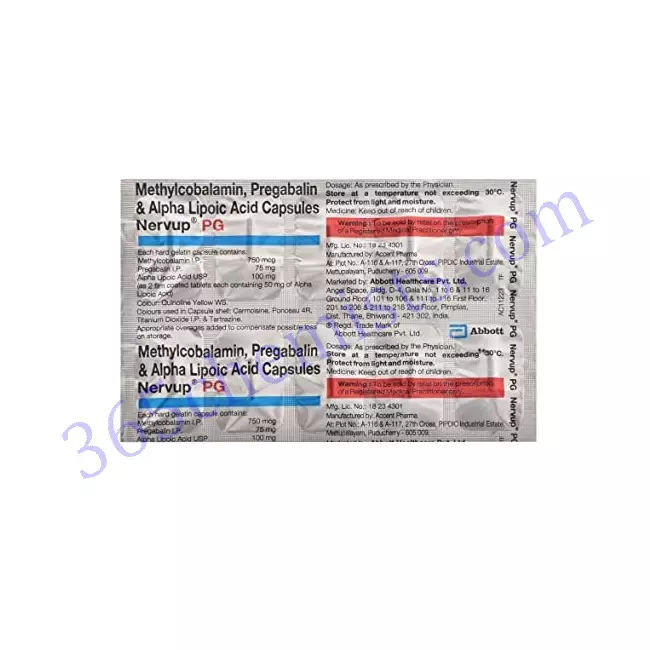 One of the active ingredients in Nervup PG Capsule is called pregabalin, and it works by inhibiting the release of certain neurotransmitters that are responsible for the transmission of pain signals. It is helpful in relieving the pain associated with neuropathic conditions, such as diabetic peripheral neuropathy, post-herpetic neuralgia, and fibromyalgia. The second active component, methylcobalamin, is a form of vitamin B12 that plays a role in the body’s metabolic processes. It is essential for the proper functioning of nerve cells, as well as for the synthesis of DNA and the development of red blood cells. These components, when combined, provide pain relief and promote healthy nerve function through a process known as synergistic action.