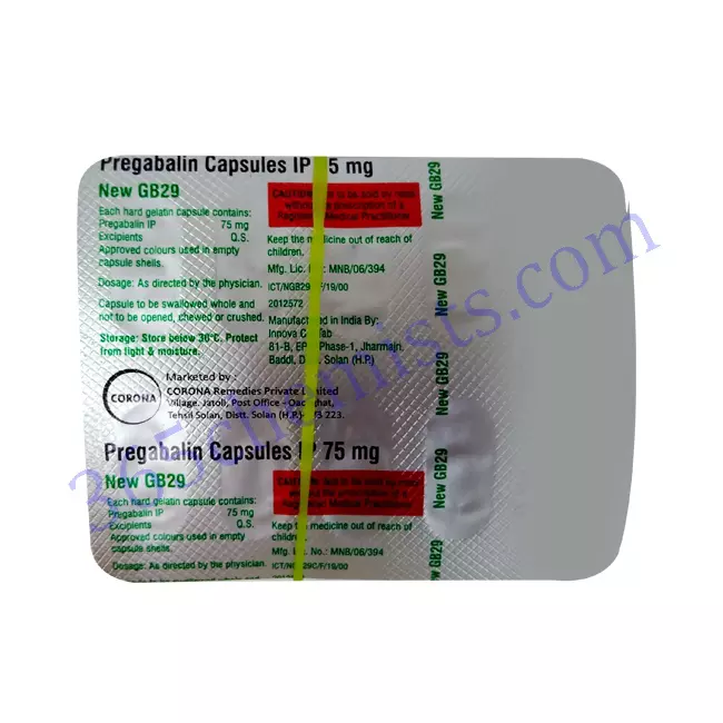 The active ingredient in New GB29 Capsule, pregabalin, exerts its therapeutic effect in the central nervous system (CNS) by binding to calcium channel receptors there. Neuropathic pain can be alleviated as a result of its ability to inhibit the release of specific neurotransmitters that are involved in the process of pain transmission. Patients suffering from conditions such as diabetic peripheral neuropathy, post-herpetic neuralgia, and fibromyalgia are frequently given prescriptions for pregabalin.