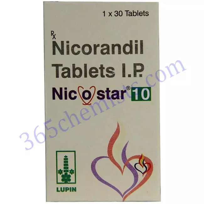 Nicorandil is the active component of the medication Nicostar 10mg Tablet, which is available from our website. Angina pectoris is a condition that is characterised by chest pain or discomfort due to reduced blood flow to the heart muscles. This medication, which is classified as a member of a class of drugs known as potassium channel openers, is primarily used for the treatment of this condition. The Nicostar 10mg Tablet works by relaxing and dilatation the blood vessels, which improves blood flow to the heart and reduces the frequency as well as the severity of angina attacks.