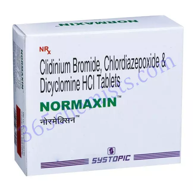 Normaxin Tablet is a combination medicine which may be used to relieve cramps and abdominal pain associated with the gastrointestinal (the stomach and intestines) disorders such as irritable bowel syndrome, diverticulitis, enterocolitis, etc. when these digestive function disorders are associated with excessive tension and anxiety. It is also used to treat peptic ulcer disease characterized by abdominal pain, burning stomach pain, nausea, feeling fullness, bloating, etc.