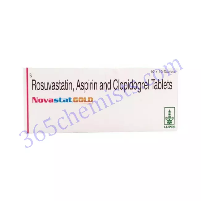 Aspirin, rosuvastatin, and clopidogrel are the three active components that are contained within a single tablet of Novastat Gold Tablet, which makes this medication one of a kind. This combination therapy provides a comprehensive approach to the management of cardiovascular health by simultaneously addressing a number of risk factors. Clopidogrel is an anticoagulant, aspirin has antiplatelet effects, rosuvastatin reduces cholesterol levels, and clopidogrel stops the formation of blood clots. These medications have a complementary effect on one another, which lowers the risk of adverse cardiovascular events.