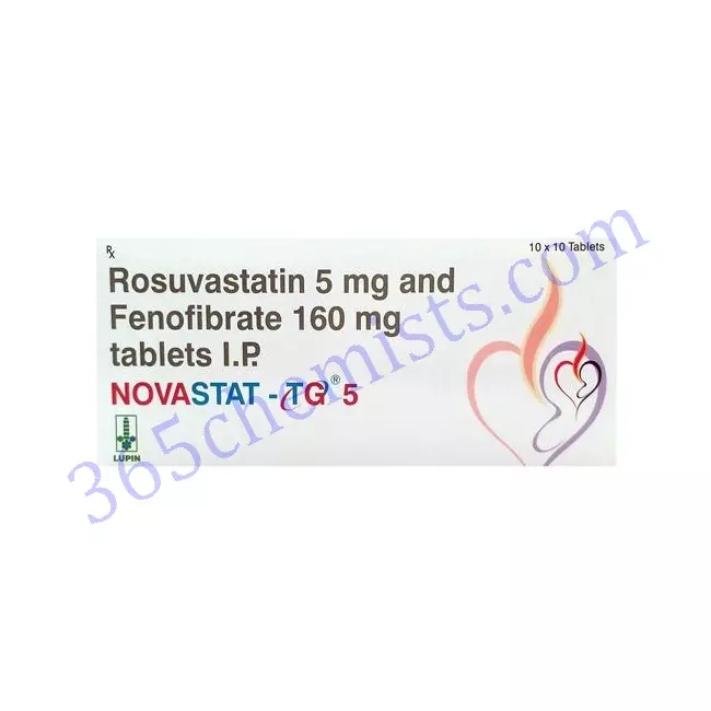 One tablet of the medication known as Novastat TG 5 mg Tablet contains both fenofibrate and rosuvastatin, which are the two active ingredients in the medication. This combination therapy was developed with the specific goal of achieving optimal lipid management and significantly lowering the risk of cardiovascular events. While rosuvastatin works to lower levels of low-density lipoprotein (LDL) cholesterol, the focus of fenofibrate treatment is on lowering triglyceride levels. Together, they provide a holistic approach to the management of lipids and the maintenance of cardiovascular health.