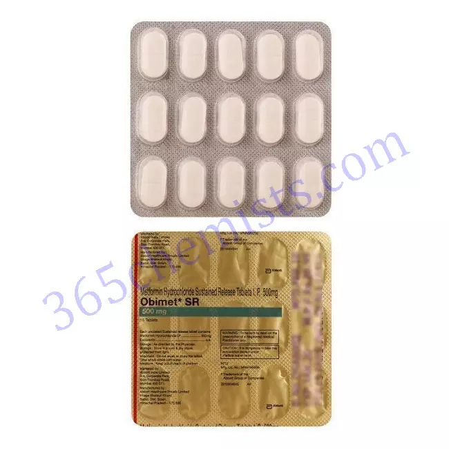 A drug that is used in the management of diabetes mellitus type 2, the Obimet SR 500mg Tablet is available. Metformin, which is present in this product at a dosage of 500 milligrammes, is a drug that is classified under the category of biguanides. The drug in each Obimet SR 500mg Tablet is designed to be slowly released over an extended period of time. This allows the tablet to provide a sustained impact and contributes to the maintenance of stable blood sugar levels throughout the day. The purpose of this explanation is to provide an overview of the medication, including its mode of action, dose recommendations, potential adverse effects, and other critical factors to take into mind.