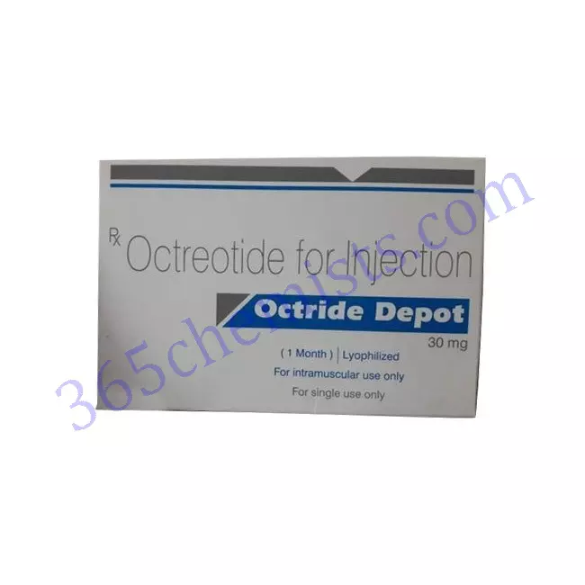 A condition known as acromegaly, which is characterised by an excessive secretion of growth hormone, can result in an abnormal enlargement of the bones and tissues. Octride Depot 30mg The release of growth hormone can be effectively suppressed through injection, which in turn reduces the symptoms of acromegaly and prevents further complications from occurring.