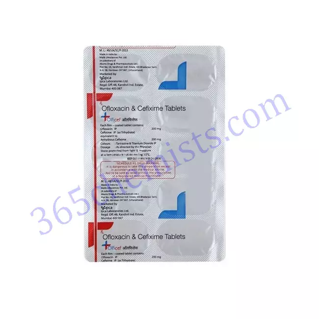 This medicine only treats bacterial infections and doesn’t work for viral infections like flu. It works as an antibiotic by stopping the growth of bacteria and also killing it. Olficef Tablet usually taken at intervals of 12 or 24 hours. It should be taken at the same time every day. If you miss a dose, it’s better to skip that dose if it’s already too late. Overdosing can cause harmful effects in your body.