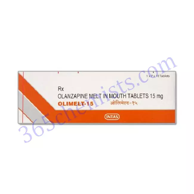 - Olimelt 15mg Tablet is commonly prescribed for the treatment of schizophrenia, a chronic mental disorder characterised by hallucinations, delusions, disorganised thinking, and social withdrawal. It promotes better functioning as well as a higher overall quality of life while also helping to alleviate these symptoms.