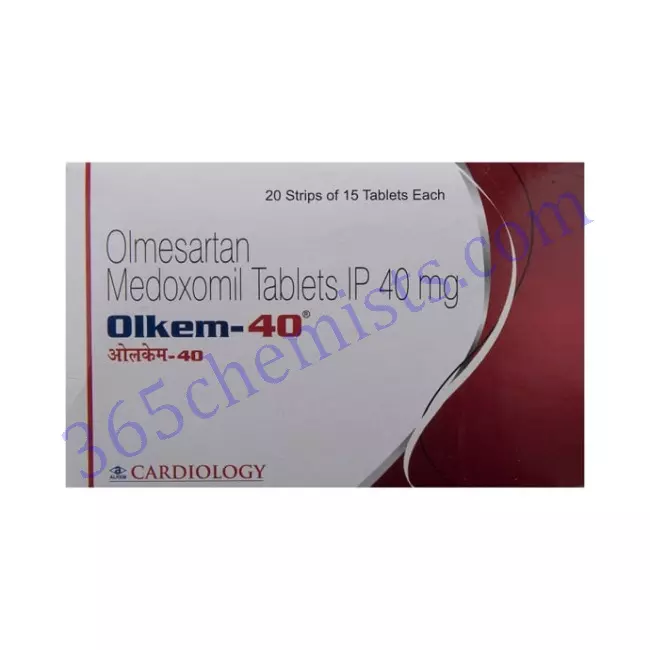 In the treatment of hypertension, the medication known as Olkem 40mg Tablet, which contains Olmesartan Medoxomil 40mg, has proven to be highly effective. It accomplishes this by inhibiting the actions of angiotensin II, which then allows the blood vessels to loosen up and expand. The end result is a decrease in blood pressure and an improvement in cardiovascular health. Olkem 40 mg Tablet is generally well tolerated, with only mild and fleeting adverse effects being reported. Nevertheless, it is essential to take the medication exactly as directed, including the dosage, and to speak with a qualified medical professional if any concerns or adverse effects occur. Tablets of Olkem 40mg, when used correctly and monitored closely, have the potential to become an indispensable component in the management of hypertension, contributing to improved cardiovascular health and general well-being.