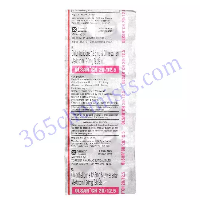 Olsar CH 20mg Tablet is a complete and efficient treatment for hypertension, combining Olmesartan Medoxomil 20mg and Chlorthalidone 12.5mg. Through a dual mode of action, it controls blood pressure, lowering the risk of cardiovascular problems brought on by high blood pressure. Before beginning this drug, it is essential to seek the advice and proper evaluation of a healthcare practitioner. Adopting a healthy lifestyle that includes dietary adjustments, frequent exercise, and stress management might further improve blood pressure control when combined with medication. People can better control their blood pressure and enhance their overall cardiovascular health with the right treatment and lifestyle changes.