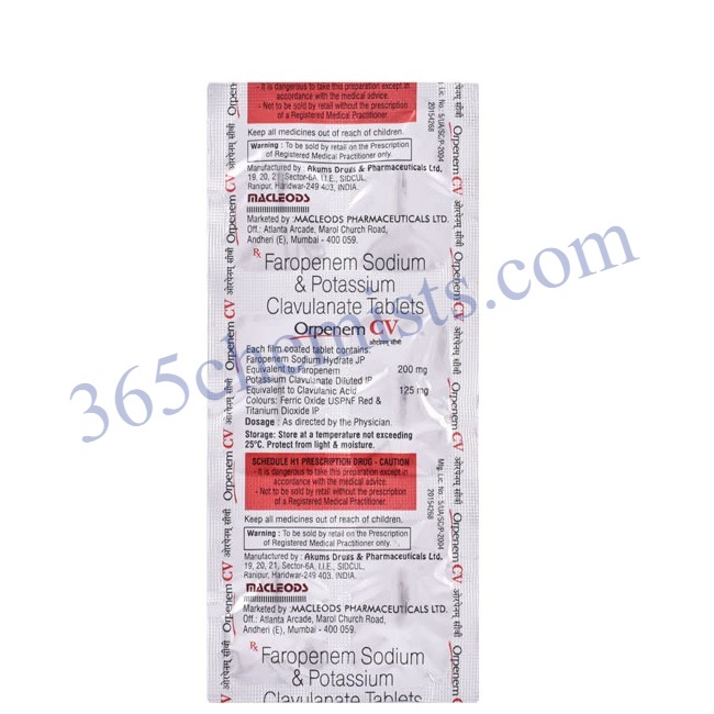 The OrpenemCV Tablet treats bacterial infections such as pneumonia, urinary tract infections, skin infections, and abdominal infections.