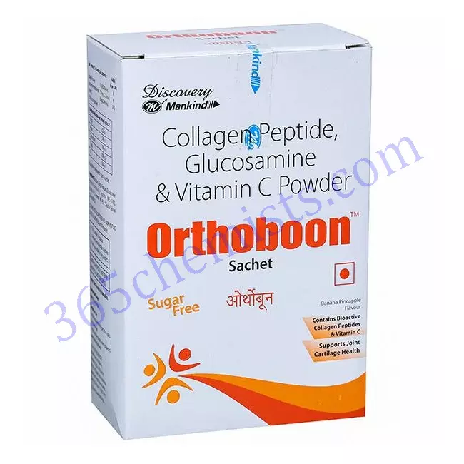 Healthcare professionals frequently recommend Orthoboon Sachet(Collagen Peptides-10gm + GlucosamieE Hydrochloride-1500mg + Vitamin C-35mg) for individuals suffering from osteoarthritis, age-related joint degeneration, post-injury recovery, and nutritional bone deficiencies. Its well-researched ingredients work synergistically to reduce inflammation, nourish joints, and strengthen bones naturally.