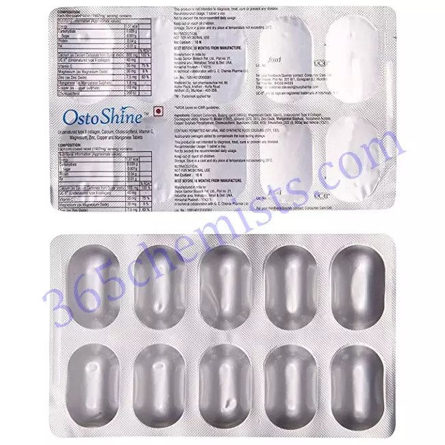 - Comprehensive Support for Bone Health: The Ostoshine Tablet offers comprehensive support for bone health by combining Calcium Carbonate, Cholecalciferol, and Copper Sulphate in order to promote bone density and strength.