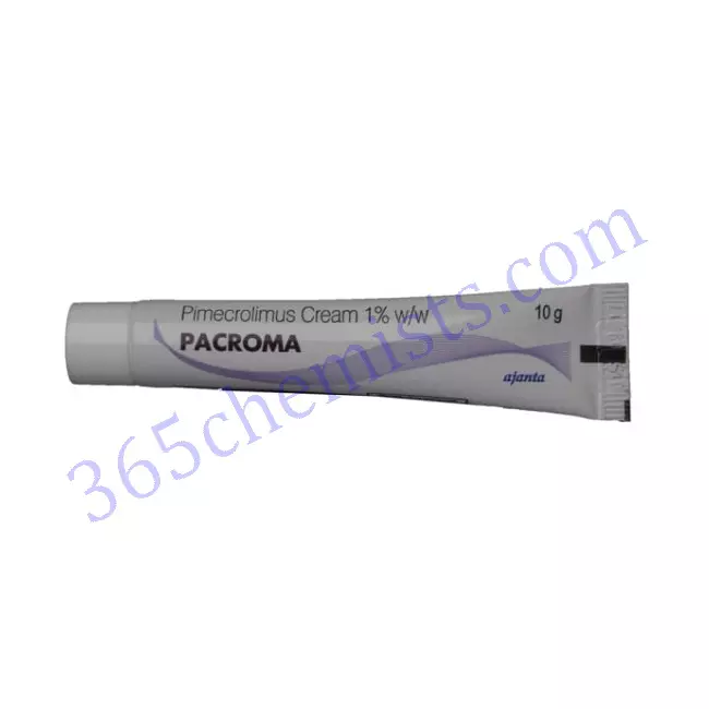 Pacroma 1% Cream 10 gm belongs to a class of dermatological preparation called ‘immunosuppressants‘ primarily used to prevent allergies including swelling, itching redness, heat and pain caused due to certain skin problems such as dermatitis (itchy, swelling of the skin) and eczema (itchy, cracked, swollen or rough skin). Eczema is a condition in which skin patches become inflamed, itchy, cracked and rough. Dermatitis is a skin condition that causes itchy, dry skin or a rash on swollen, reddened skin.