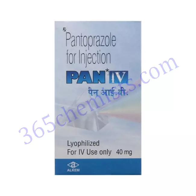 PAN IV 40mg Injection is a medication that contains pantoprazole and is administered intravenously. It is primarily used for the treatment of acid-related disorders, including gastroesophageal reflux disease (GERD), gastric ulcers, and duodenal ulcers. This injection form of pantoprazole is particularly beneficial in situations where oral administration may not be feasible or when rapid relief is required.