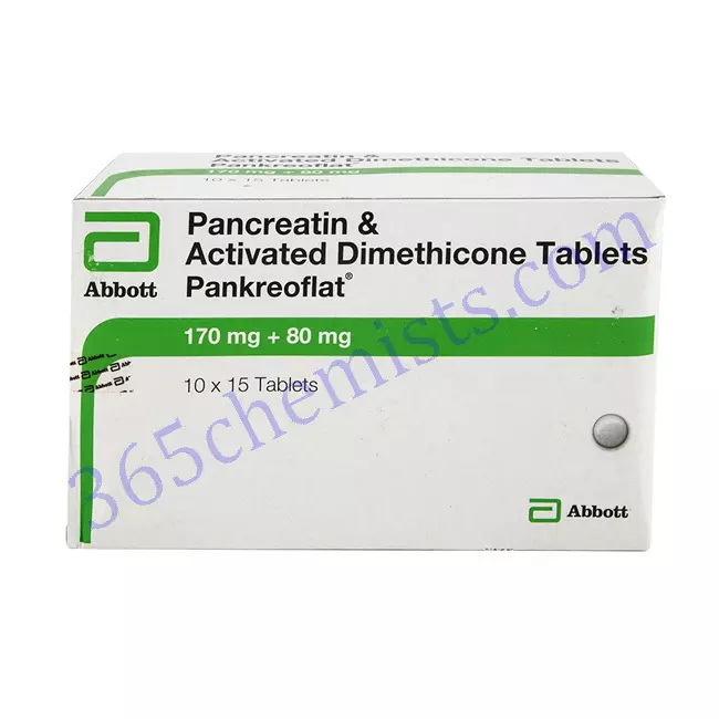 Pankreoflat Tablet is used to treat abdominal pain and associated bloating and indigestion. It is a combination medication containing Pancreatin and Dimethicone. It works together and allows easy passage of the stomach gas and relives the pain caused due to it.