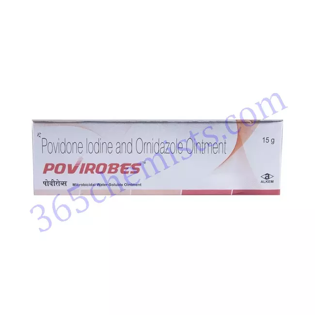 Povirobes Ointment is a combination of two medicines: Povidone Iodine and Ornidazole. Povidone Iodine is an antiseptic applied on skin which is infected or is likely to get infected. It slowly releases iodine which kills or prevents the growth of infectious microorganisms. Ornidazole is an antibiotic which kills bacteria and other infectious microorganisms by damaging the DNA.