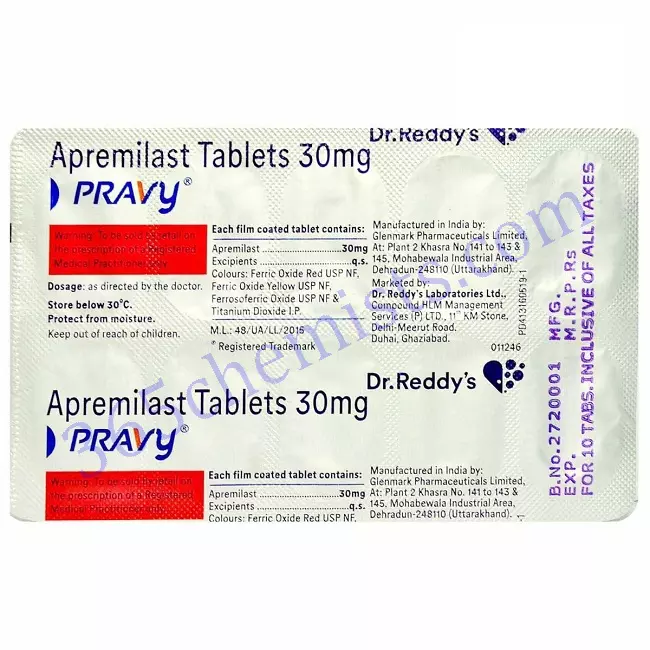 Home New Products Pravy 30mg Tablet (Apremilast 30mg)