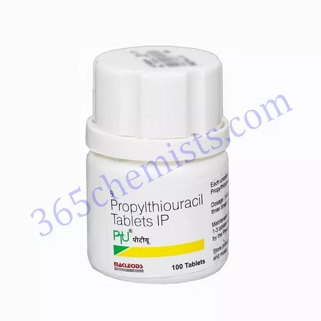 PTU Tablet 100’s is an anti-thyroid drug used to treat hyperthyroidism and diseases that produce an overactive thyroid. It contains propylthiouracil. PTU Tablet 100’s works by inhibiting the formation of new thyroid hormones, thereby regulating the amount of thyroid hormone in the body and slowing down the thyroid gland that was otherwise in overdrive. Hence, PTU Tablets 100’s helps in treating and controlling the symptoms of excess thyroid hormone in the body, including anxiety, palpitation, a racing heartbeat, swelling in the neck (goitre), and weight loss. PTU Tablets 100’s may also be used to lower very high levels of thyroid hormone prior to surgery or radioactive iodine treatment.