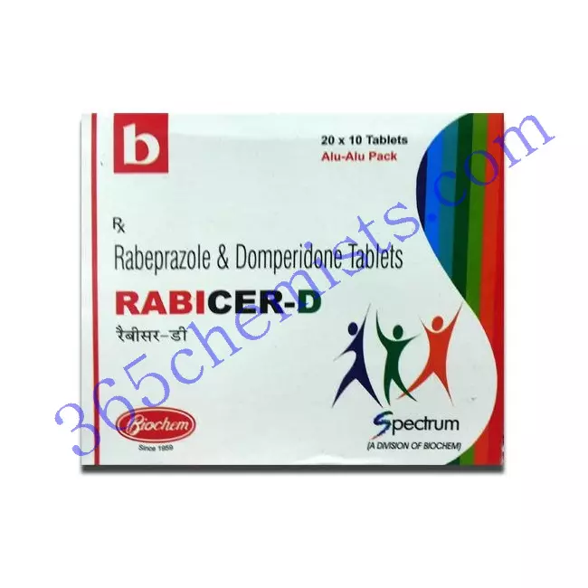 In order to relieve gastrointestinal problems, the combination drug Rabicer D Tablet combines the advantages of Domperidone and Rabeprazole. Rabicer D Tablet relieves symptoms like bloating, nausea, heartburn, and acid reflux by controlling digestion and lowering stomach acid production. It’s crucial to take the medication as directed and to speak with your doctor if you have any questions or encounter any negative effects. The use of Rabicer D Tablet in conjunction with your healthcare provider’s advice can help you manage gastrointestinal issues and enhance your digestive health.