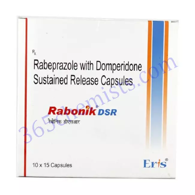 A prescription drug called Rabonik DSR Capsule is used to treat a number of gastrointestinal problems linked to acid. Domperidone and Rabeprazole are used in a novel way to treat many elements of gastritis, acid reflux, and related conditions. Domperidone helps to increase gut motility, making it easier for food to move through the digestive system, and Rabeprazole lowers stomach acid levels, relieving symptoms and hastening the healing process.