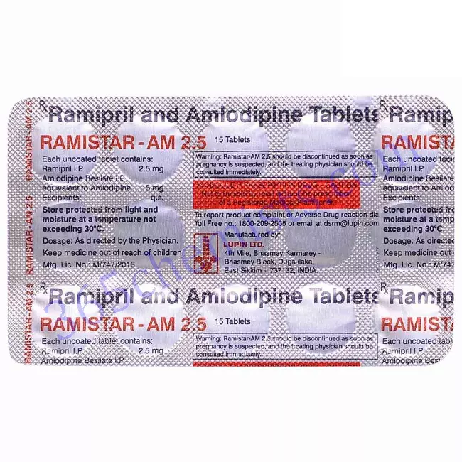 The tablet known as Ramistar AM 2.5mg contains both amlodipine and ramipril, which are the two components of the medication that are responsible for its effects. The management of hypertension, which is another name for high blood pressure, is the most common reason for a doctor to prescribe it. The blood vessels are made more relaxed and less work is required of the heart thanks to the blood pressure-lowering effects of Ramistar AM.