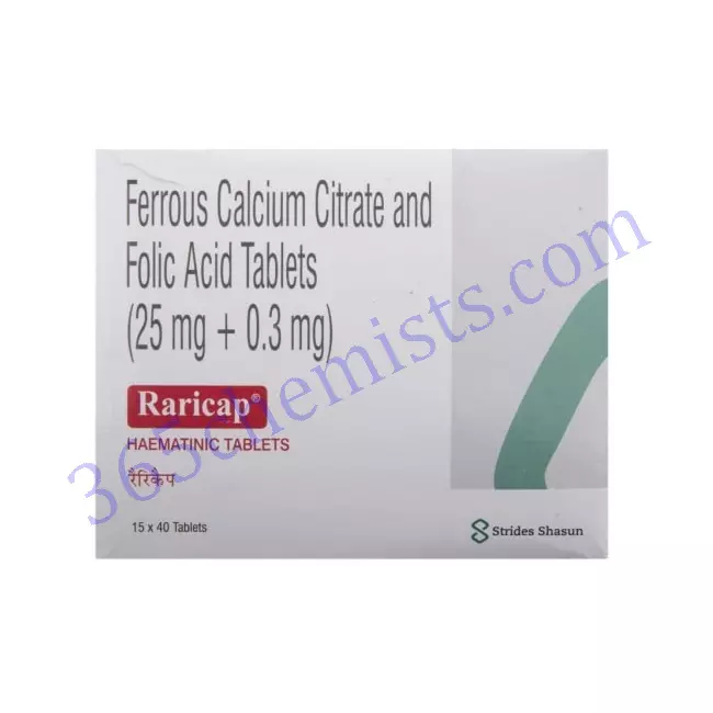 - Comprehensive Nutritional Support The Raricap Tablet provides an all-in-one solution by combining ferrous calcium citrate and folic acid into a single, easy-to-take tablet. This makes it possible to provide comprehensive nutritional support. This guarantees that the requirements for iron, calcium, and folic acid will be met simultaneously by the body.