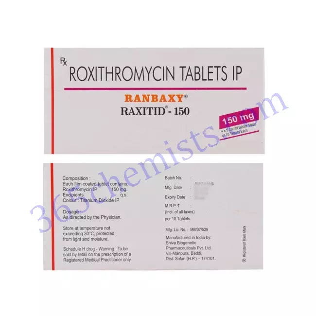 The macrolide antibiotic Raxitid 150mg Tablet (Roxithromycin 150mg) is commonly used for the treatment of respiratory tract infections as well as certain skin and soft tissue infections. It is a well-liked option for treating these conditions due to the fact that it is effective and only needs to be taken once daily. However, it is essential to make sure to take this medication exactly as directed, adhere to the dosage that is recommended, and pay attention to all of the precautions and warnings. Maintaining open lines of communication with one’s healthcare team and closely monitoring one’s response to treatment will both maximise the likelihood of favourable outcomes and reduce the likelihood of unwanted effects.