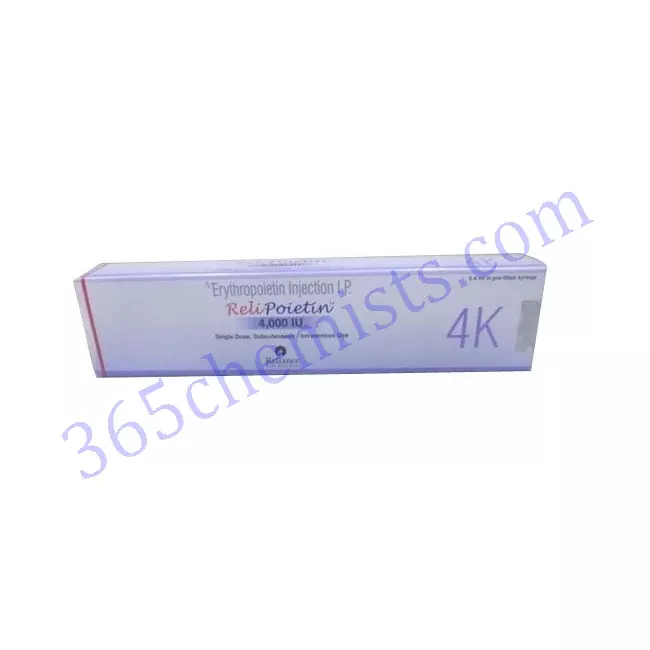 Relipoietin Injection is used for the treatment of anaemia that occurs because of cancer chemotherapy, HIV infection treatment with zidovudine, or kidney disease.