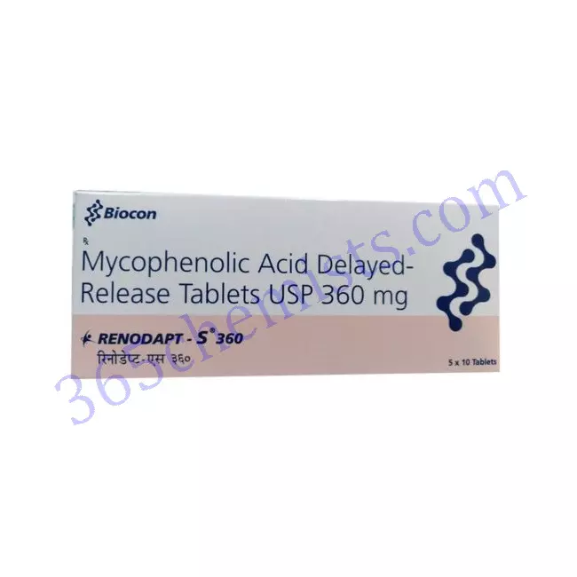 Before beginning treatment with Renodapt S 360mg Tablet, medical professionals should evaluate the patient’s medical history and consider the potential risks and benefits that may be associated with taking the medication. Patients who have shown a history of hypersensitivity to mycophenolate sodium or any of the component parts of Renodapt S 360mg Tablet should not take this medication. In addition, patients who have a history of gastrointestinal disorders, such as peptic ulcer disease or diverticulitis, should use the medication with extreme caution because it has the potential to make these conditions even worse if taken as directed. Because the Renodapt S 360mg Tablet can affect the blood cell count and the function of the liver, it is recommended that these parameters be monitored on a regular basis.