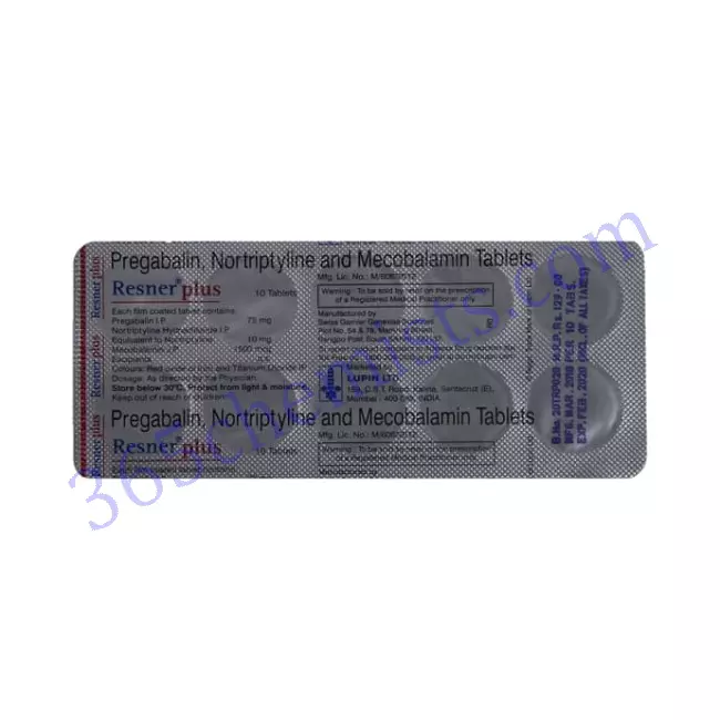 Resner Plus tablet is a combination of three molecules pregabalin, methylcobalamin and nortriptyline.