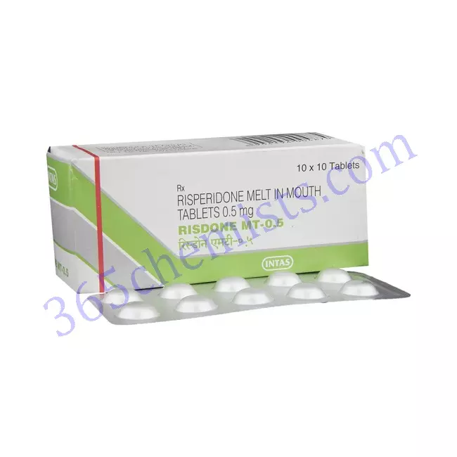 Risdone MT 0.5mg Tablet is an important medication that is used in the management of a variety of psychiatric conditions. Each tablet contains 0.5mg of risperidone. The symptoms of schizophrenia, bipolar disorder, and autism spectrum disorder can be alleviated thanks to this medication’s action, which involves the modulation of neurotransmitters in the brain. It is essential to take this medication exactly as directed, including strictly adhering to the dosage, as well as all of the precautions and warnings that come with it. In order to ensure that Risdone MT 0.5mg Tablet is used in a manner that is both safe and effective, regular monitoring and communication with a healthcare professional are both required.