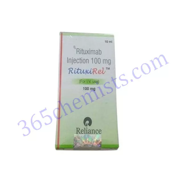 Rituxirel 100mg Injection contains Rituximab 100mg used to treat Non-Hodgkin lymphoma, Rheumatoid arthritis, Chronic lymphocytic leukemia, Granulomatosis with polyangiitis, Pemphigus Vulgaris, and Microscopic polyangiitis. It is used alone or with other combinations.