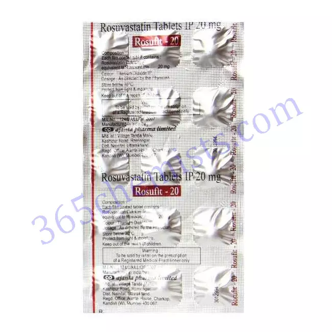 A powerful medication that helps lower cholesterol levels in the blood, rosuvastatin, which is the active ingredient in Rosufit 20mg Tablet, is included in this product. It accomplishes this by inhibiting an enzyme in the liver known as HMG-CoA reductase, which is an essential component in the production of cholesterol in the liver. Rosuvastatin works to lower overall cholesterol levels in the body by inhibiting the production of cholesterol. This includes LDL (low-density lipoprotein) cholesterol, which is commonly referred to as the “bad” cholesterol.