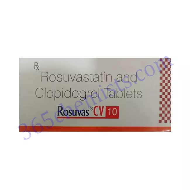 Rosuvas CV 10mg Tablet is a combination medication that effectively manages cholesterol levels and inhibits platelet aggregation. Its active ingredients, rosuvastatin and clopidogrel, are found in the medication’s Rosuvas CV 10mg Tablet. The Rosuvas CV 10mg Tablet helps lower the risk of cardiovascular events and supports overall heart health. It does this by lowering LDL cholesterol levels and preventing the formation of blood clots. It is essential, in order to achieve the best results possible, that you adhere to the dosage that has been prescribed for you, that you regularly monitor your cholesterol levels, and that you adopt a healthy lifestyle. You can effectively manage your cholesterol levels and reduce the risk of cardiovascular events by working closely with your healthcare provider while taking Rosuvas CV 10mg Tablet.