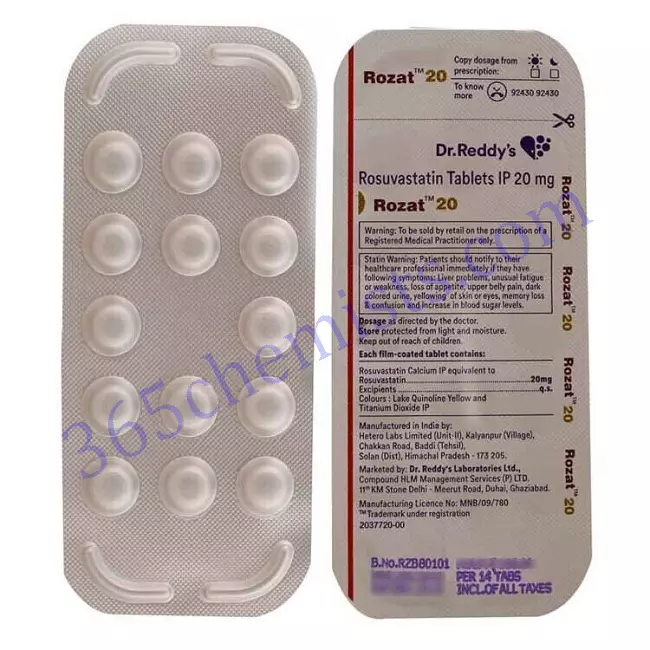 A significant improvement in cardiovascular health can be accomplished with the help of the medication Rozat 20mg Tablet, which contains the active ingredient rosuvastatin. This tablet works by efficiently reducing levels of LDL cholesterol. You can maximise the benefits of Rozat 20mg Tablet and reduce the risk of cardiovascular events if you adhere to the recommended usage, are aware of the potential side effects, and follow the necessary precautions. Rozat is a medication that is used to treat hypertension. Maintaining consistent communication with your healthcare provider is absolutely necessary in order to keep track of your progress and discuss any potential modifications to your treatment strategy. You can make significant progress towards achieving and maintaining optimal heart health with the assistance of Rozat 20mg Tablet and a holistic strategy for the treatment of cardiovascular conditions if you so choose.
