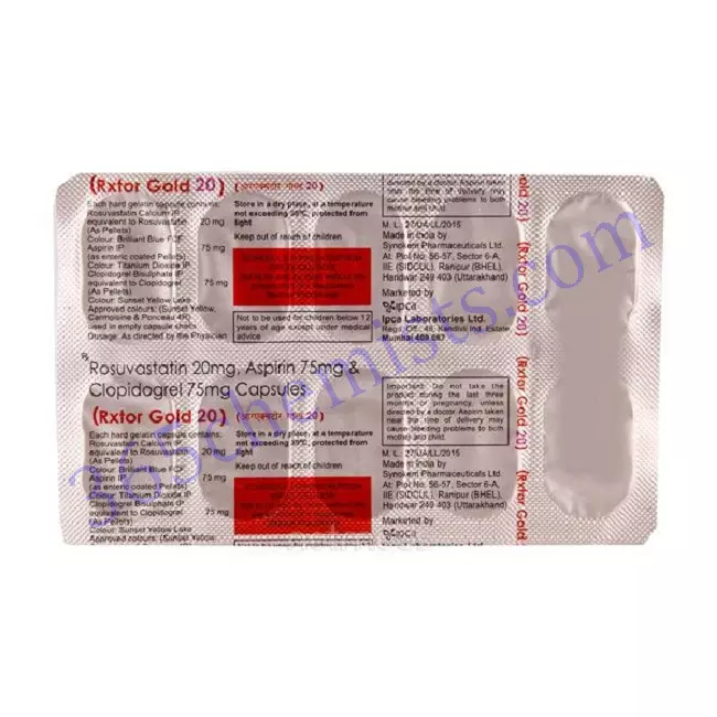 Rxtor Gold 20 milligrammes Capsule is a pharmaceutical formulation that combines three key ingredients in an optimised dosage of 75 milligrammes each. These key ingredients are aspirin, rosuvastatin, and clopidogrel. This potent combination was developed with the express purpose of promoting and maintaining cardiovascular health. This is accomplished by targeting multiple risk factors and lowering the likelihood of associated complications. Rxtor Gold 20mg Capsule has won praise for both its efficacy and its lack of side effects in the treatment of cardiovascular conditions and the general enhancement of one’s health.