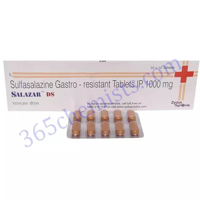 Sulfasalazine is the active component in the treatment offered by Salazar DS Tablet, which is a tablet form of the medication. A derivative of 5-aminosalicylic acid, sulfasalazine is a type of medication known as a disease-modifying antirheumatic drug (DMARD). The management of inflammatory bowel disease (such as ulcerative colitis and Crohn’s disease) and certain rheumatic conditions are common uses for this medication. The purpose of this detailed explanation is to provide an in-depth understanding of Salazar DS Tablet, including its applications, dosage, potential side effects, and other relevant information.